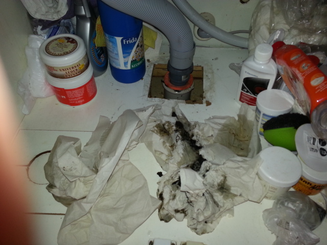 Ett stopp i en WC-stam löst. Här är vi hos en kund som har stopp nån gång om året. Vid återkommande problem kan det löna sig att filma rören och ta reda på vad orsaken är.